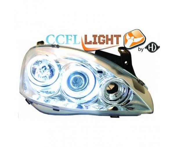Paire de phares ANGEL EYES CCFL, cristal/chrome pour Opel CORSA 2000-2006 - GO1813481