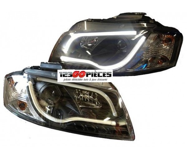 399,90 €Paire de phares avants H7/H, fond noir, look XENON, pour réglage électrique, avec TUBE NEON + LED intégrés (s'allument en feux de positon mais n'ont pas de fonction feux de jour)