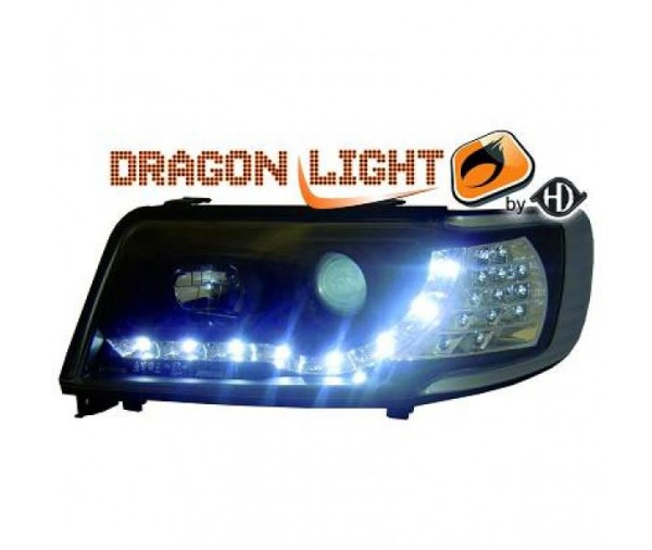 Paire de phares diurnes à LED, noir pour Audi 100 1990-1994